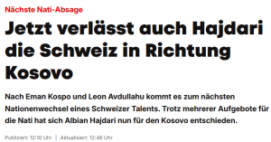 Blicku zviceran komenton largimin e Albian Hajdarit nga helvetët. E vlerëson sukses të Agim Ademit dhe konkurrencë të fortë në qendër të mbrojtjes zvicerane luftën e tij për një vend në reprezentacionin e Zvicrës. Përkthimi i plotë i artikullit të Blick, mëposhtë: