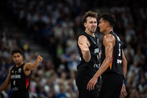 Dhe pikërisht Gjermania, si rrallëherë në basketboll, po e jep përshtypjen e një makinerie që vështirë do të jetë për ta ndalur. Sistemi i vendosur nga Gordon Herbert e ka shndërruar Gjermaninë në fuqi basketbollistike si kurrë më parë. Bronzi i Eurobasketit 2022, titulli botëror në 2023 dhe vendi i katërt në Olimpiadën 2024, janë dëshmi që ka edhe rezultate. Pasardhësi i tij Alex Mumbrú e vazhdon punën aty ku ka mbetur – dyshja Schröder-Wagner ka krijuar një harmoni të mrekullueshme dhe kombëtarja multinacionale me laramani opsionesh ofansive në mënyrë supremaciste e mori vendin e parë në grupin B dhe krahas Turqisë është ekipi i vetëm pa humbje. Gjermanët shënojnë 105 pikë për ndeshje.