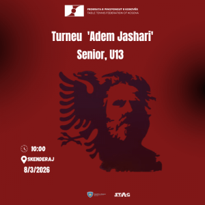 Përmes një njoftimi, Federata e Ping Pongut të Kosovës ka bërë të ditur se turneu tradicional “Adem Jashari” do të mbahet më 8 mars, këtë të diel.