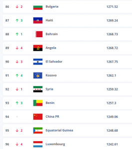 Me botimin e sotëm, FIFA ka vendosur Kosovën në pozitën e 91-të të renditjes botërore të shteteve, ndërsa arsyeja kryesore e kësaj renditjeje ka qenë fitorja e madhe e Kosovës e arritur ndaj Suedisë, që është shtet i ranguar në pozitën e 32-të aktualisht, pasi pësoi rënie.