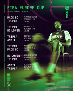 Është publikuar orari i Trepçës për sezonin e rregullt të FIBA Europe Cup.